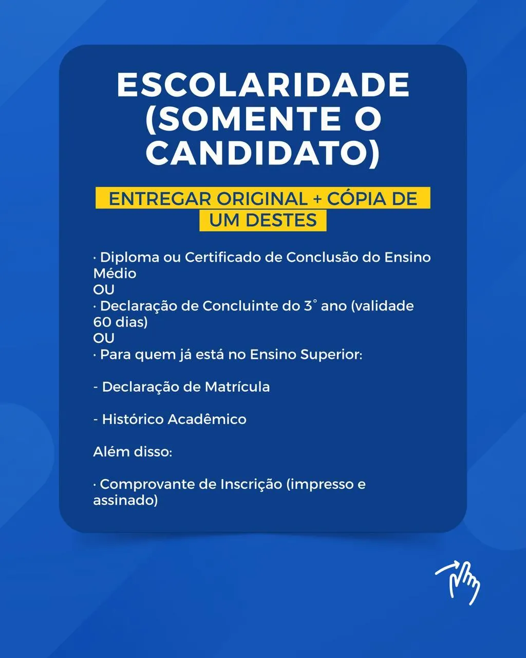 - Documentos obrigatórios SOMENTE para o candidato